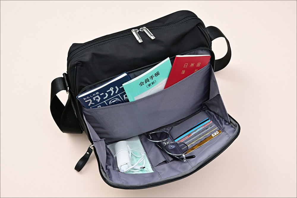 •前ポケット:きっぷ、チケット、ICカード、クレジットカード、お守り、御朱印帳、手帳など