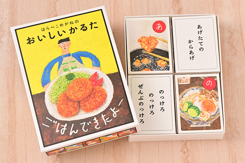 はらぺこめがね初の、かるた作品。絵札の絵はもちろん、箱や読み札に登場するイラストもすべて描き下ろしです。