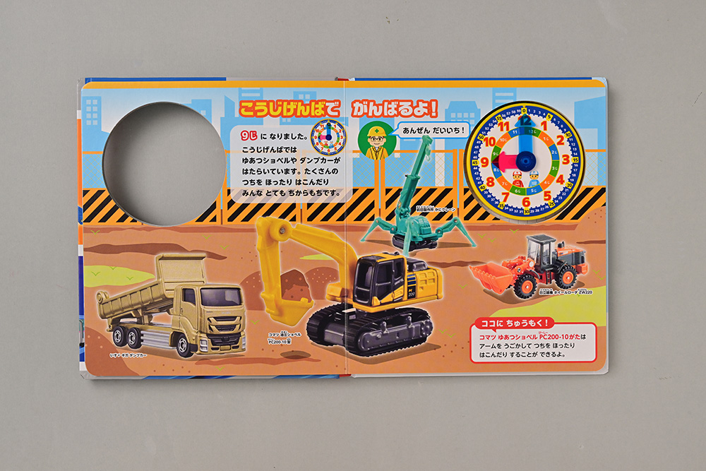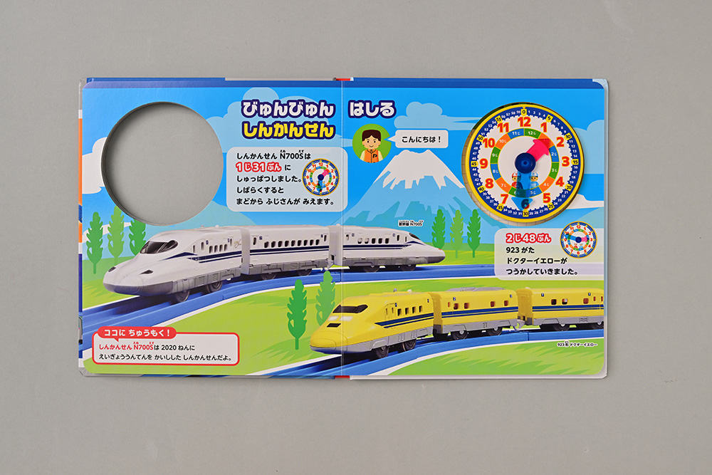 「8時」「9時」などのちょうどの時刻から「11時30分」「2時48分」「6時58分」まで、1分単位で時刻に親しむことができます。