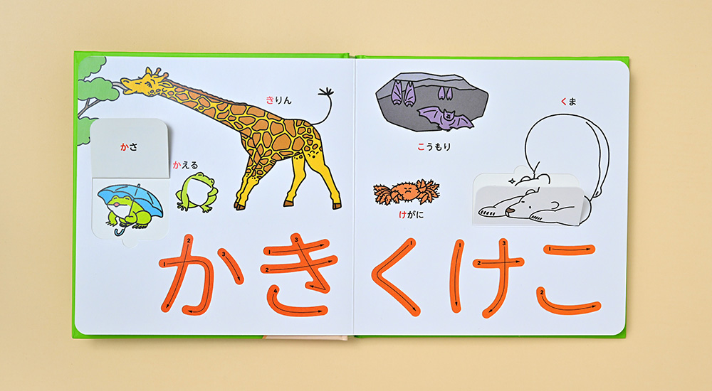 これからひらがなを覚え始めるお子さまにぴったりの、しかけ絵本です。
