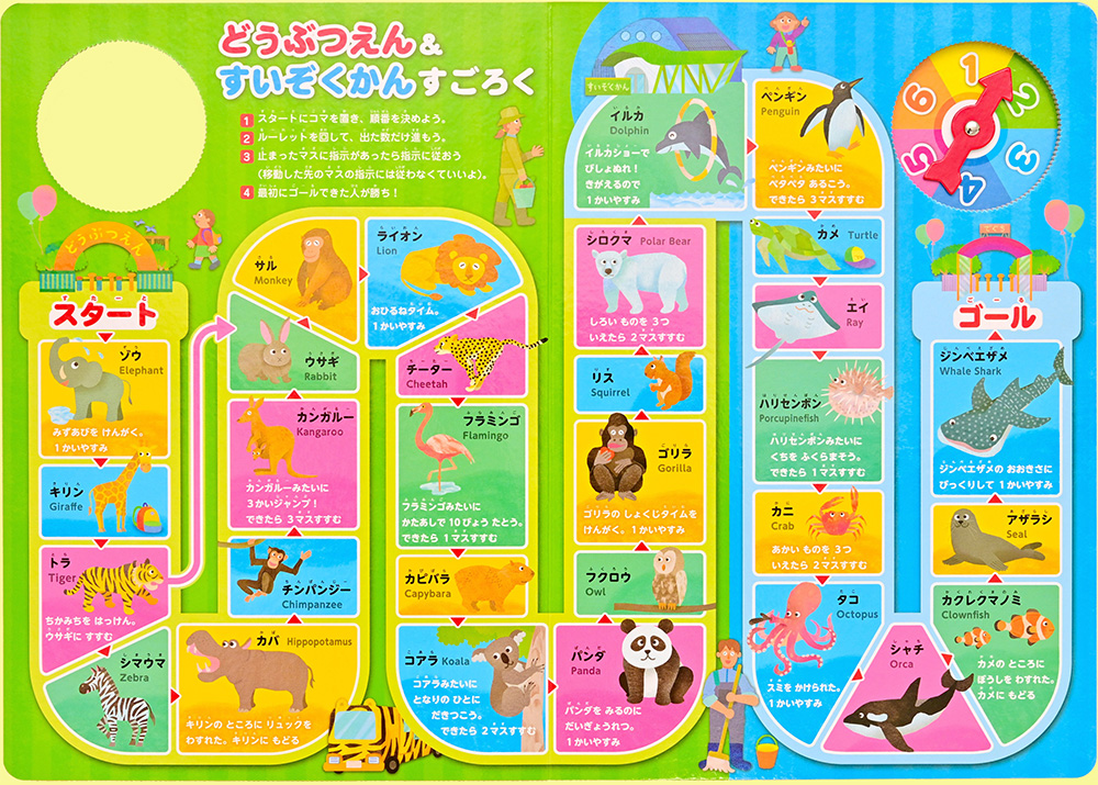 ●季節や動物、都道府県、鉄道などをテーマに、すごろくを楽しみながらいろいろな知識に触れることができます。