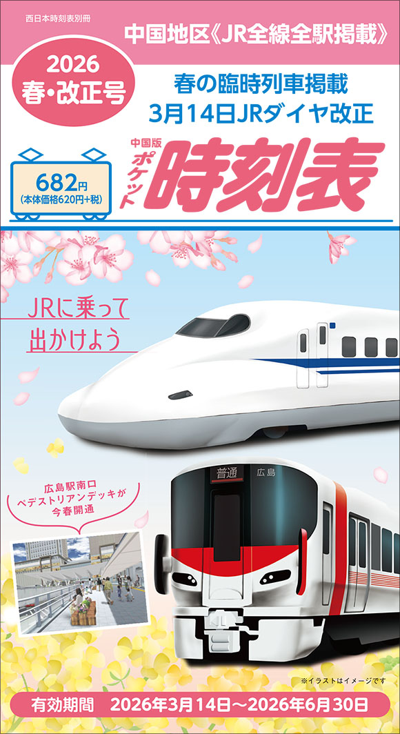 中国地区のJR全線全駅を掲載し、通勤・通学・小旅行に便利な薄型の時刻表です。